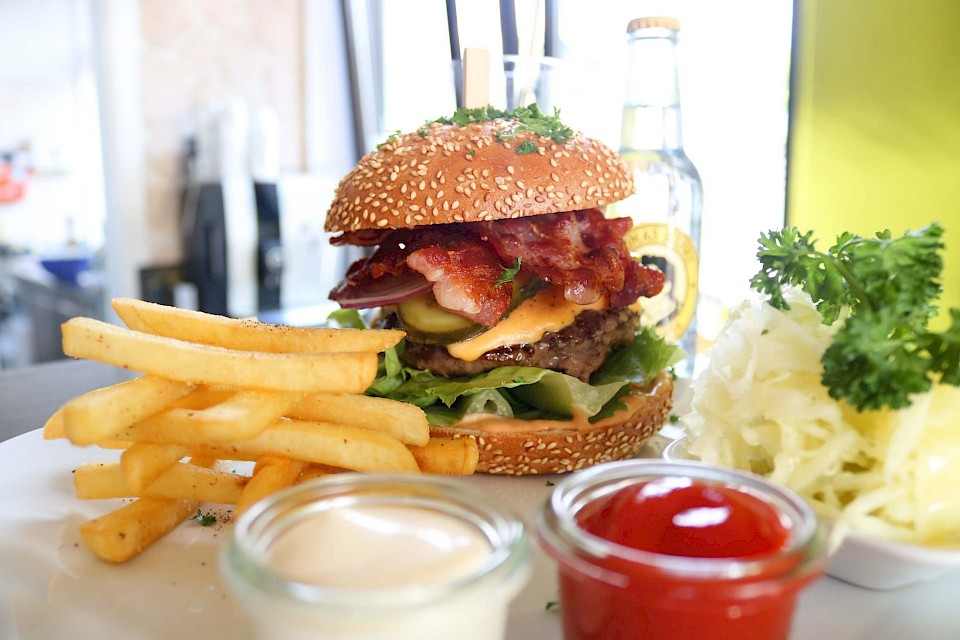 Für Ihr leibliches Wohl sorgt das Team von Die Lounge - Der Burger. Genießen Sie hier hervorragende Burger und einen wöchentlich wechselnden regionalen Mittagstisch.